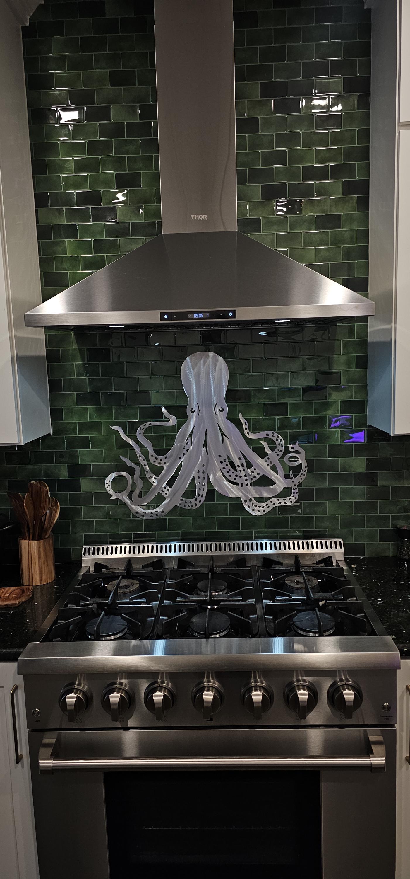 Crafted from weather-resistant brushed aluminum, this design withstands the elements while maintaining a sleek, modern appearance. The detailed silhouette of an octopus adds depth, motion, and marine charm to your walls.